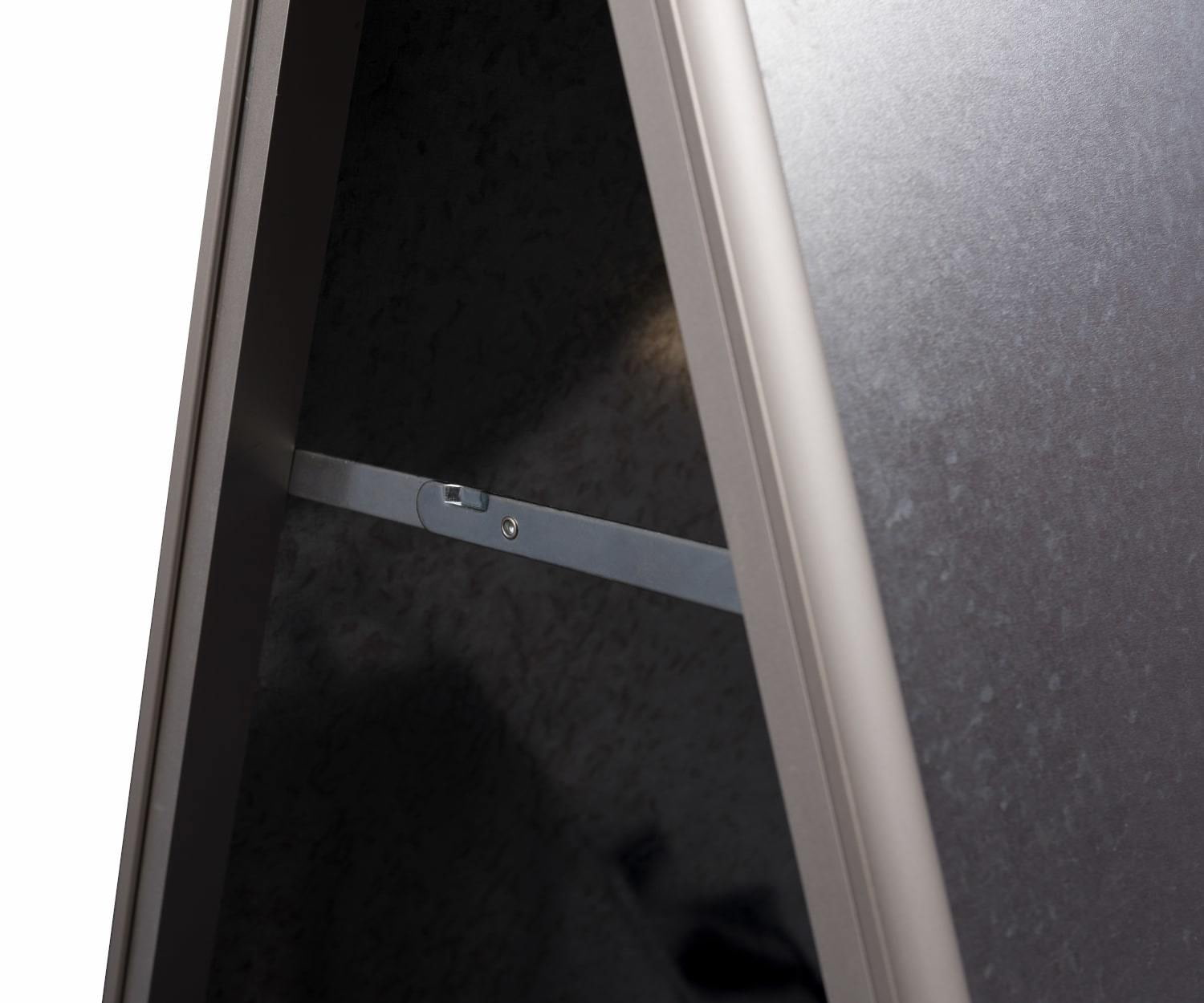„Aurora“ A formos iškabos gamintojas, žinomas ir labai populiarus daugelyje rinkų. Šis produktas yra išskirtinai tvirta ir patvari sistema, pagaminta vien iš metalo. Jo nugarėlė pagaminta iš cinkuoto plieno plokštės. Dėl to iškabą galima naudoti lauke, tačiau esant ribotam vėjui. Rėmelio sistema leidžia įdėti plakatą į vidų. Tai užtrunka vos kelias sekundes. Storas plakato viršelis turi UV filtrą, apsaugantį spaudinį nuo saulės spindulių ir spalvų blukimo. Iškabos rėmelis pagamintas iš 25 mm anoduoto aliuminio profilio. Į komplektą įeina: „Aurora“ A formos iškabos gamintojas vienoje dėžutėje.