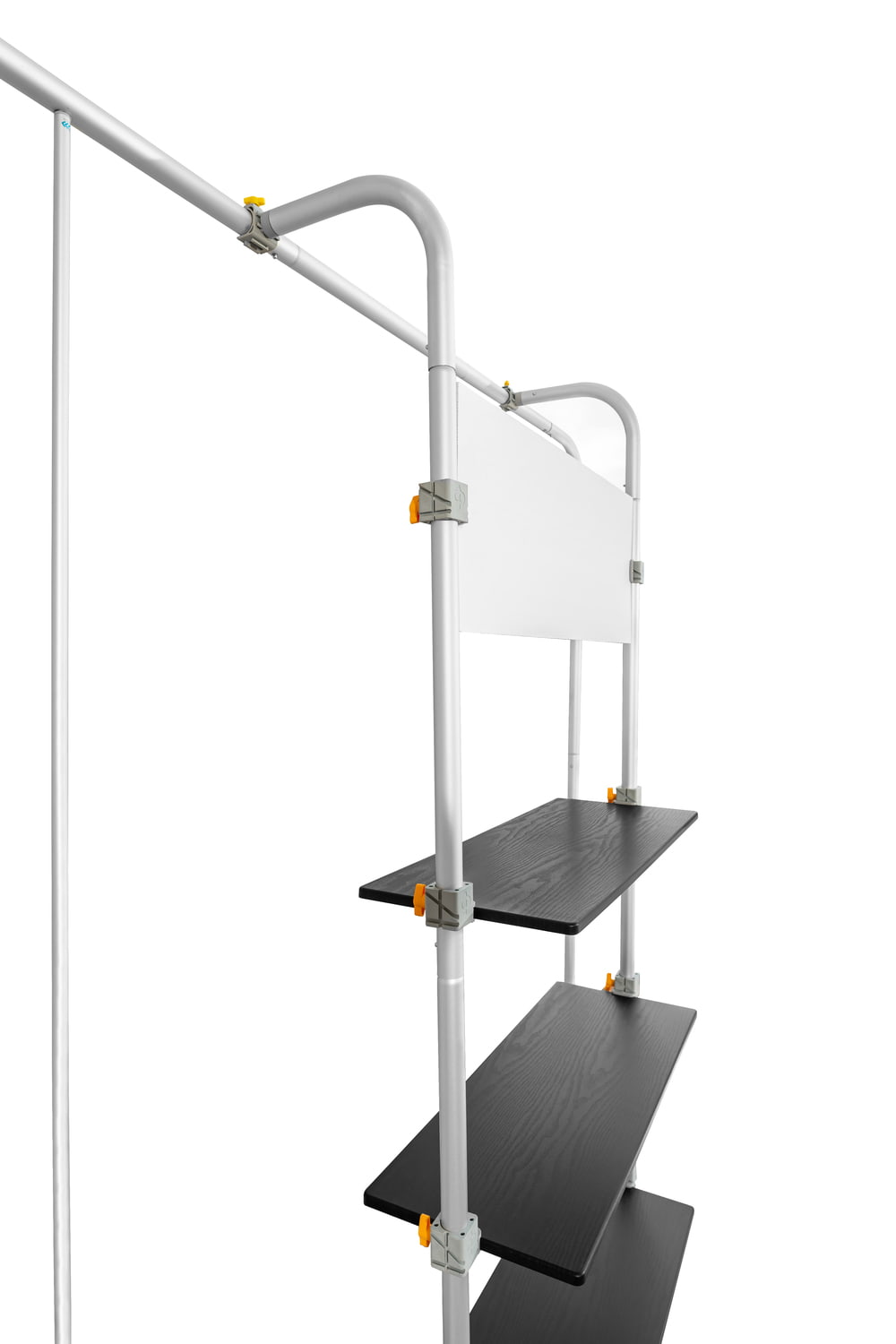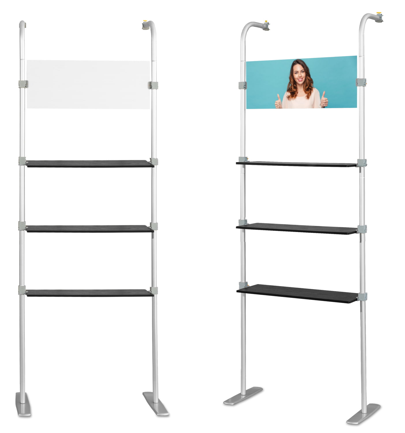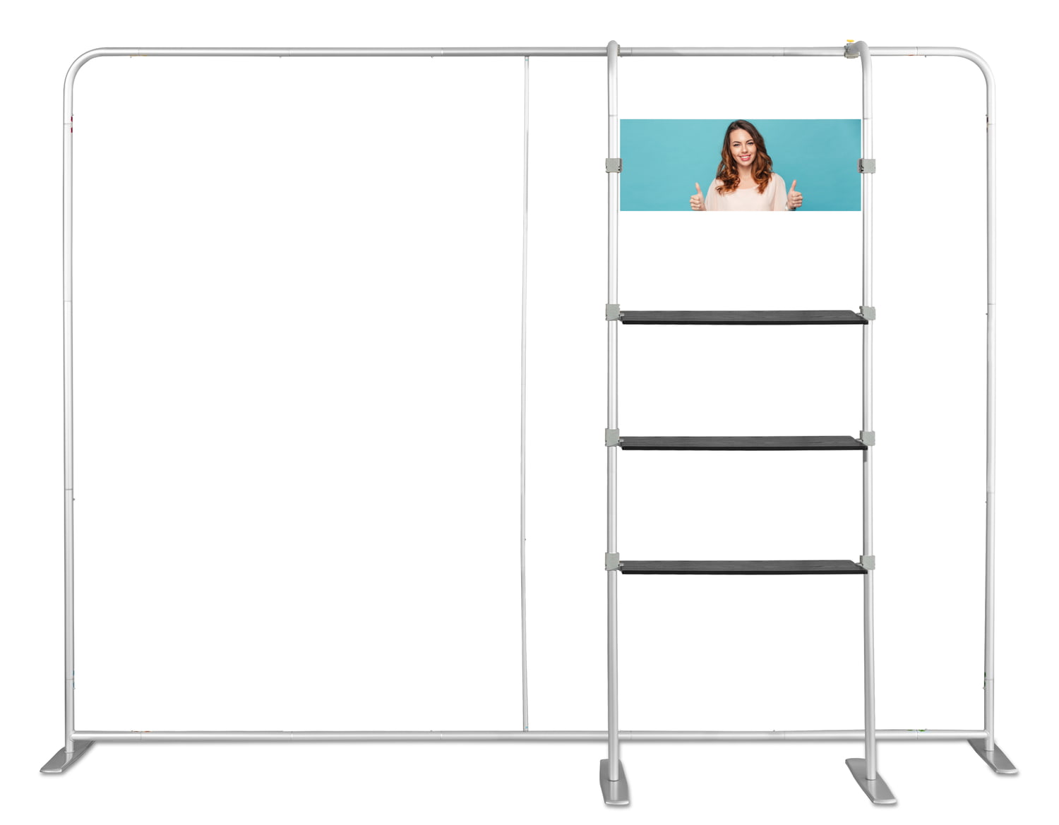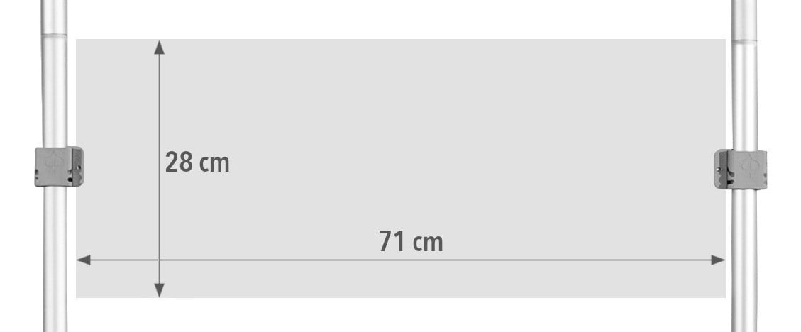 COMBI 1 prailginimas Atlantis tiesioms sienoms. Lentynų sistema Atlantis (tiesiems) sienoms. Dėl šio paprasto sprendimo kiekviena siena gali tapti pilnaverte, nepriklausoma ir labai funkcionalia parodų sistema. Puikiai tinka reklaminiams, edukaciniams ir mugių stendams. Sistema turi 3 horizontalias juodas lentynas, pagamintas iš storo plastiko, imituojančio medieną. Viršutinėje sistemos dalyje yra lenta, ant kurios galima spausdinti įmonės logotipą ar kitą grafiką (folija). Dėmesio! Šio pirkimo objektas yra tik COMBI 2 sistema. Atlantis sieną reikia įsigyti atskirai.