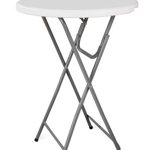 Aukštas kokteilių stalas, skirtas stovimiems renginiams. Puikus sprendimas banketams, reklaminiams renginiams ir mugėms. Stalviršis pagamintas iš labai patvaraus polietileno. Stalviršio skersmuo yra 80 cm. Stalas sulankstomas plokščiai, todėl jį lengva transportuoti ir sutaupyti vietos sandėliuojant. Papildomas blokatorius apsaugo nuo atsitiktinio sulankstymo, o kojos pritvirtintos guminėmis pagalvėlėmis, kad paviršiai nebūtų subraižyti, o stalas – neslystų. Rėmas pagamintas iš milteliniu būdu dažyto plieno. Techninis lapas (pdf): „