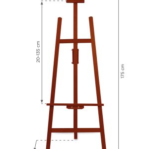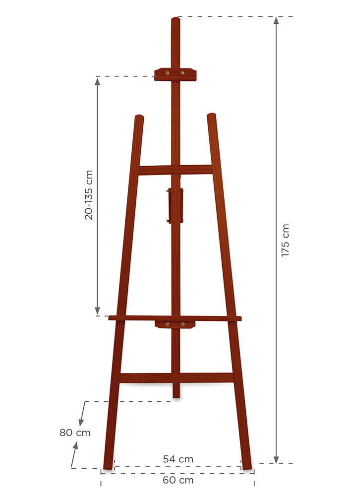 Dėmesio! Dėl tiekėjo pasikeitimo, be kita ko, pasikeitė siūlomos medienos rūšis. Dėl natūralios žaliavos kilmės gaminio išvaizda gali skirtis priklausomai nuo partijos. Medinis molbertas, pagamintas iš pušies medienos, pasižymi labai stabilia ir lengva konstrukcija. Apatinė lentyna kartu su viršutine rankena užtikrina tvirtą laikymą ant rėmo ar lentos. Platus jų reguliavimo diapazonas leidžia eksponuoti įvairaus dydžio paveikslus. Molbertą galima lengvai ir greitai sulankstyti, todėl jį daug lengviau laikyti ir transportuoti. Siūlomas produktas yra idealus sprendimas tiems, kurie ieško klasikinio ir elegantiško eksponato parduotuvei, galerijai ar restoranui. PRODUKTO PRIVALUMAI: – stabili, medinė konstrukcija – reguliuojamas. Komplektą sudaro: savarankiškai surenkamas molbertas, surinkimo instrukcijos, individuali kartoninė dėžutė.