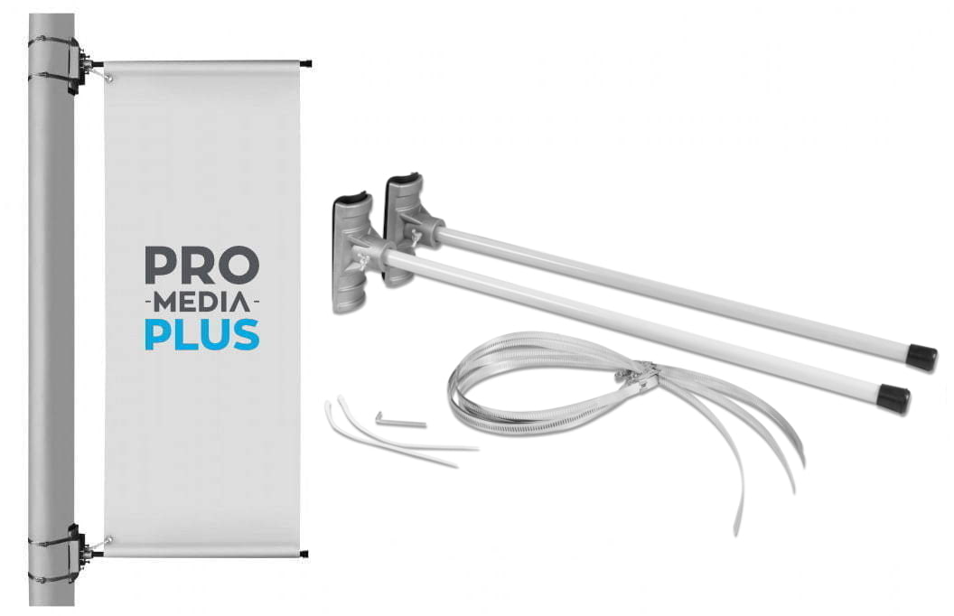„AVENUE Street Pole“ – naujas produktas mūsų asortimente. Jis tampa vis populiaresnis ir ypač naudojamas prekybos centrų ar automobilių pardavėjų automobilių stovėjimo aikštelėse, taip pat miesto alėjose ir promenadose. Ši sistema puikiai dera su flagmaniniais audiniais, taip pat su klasikine priekyje apšviesta reklamine juosta. – stiebo skersmuo: 16,5 mm. Į komplektą įeina: viršutinis ir apatinis stulpai, spaustukai (4 vnt.), guminės pagalvėlės (2 vnt.), užtrauktukai vėliavai/reklamai apsaugoti.