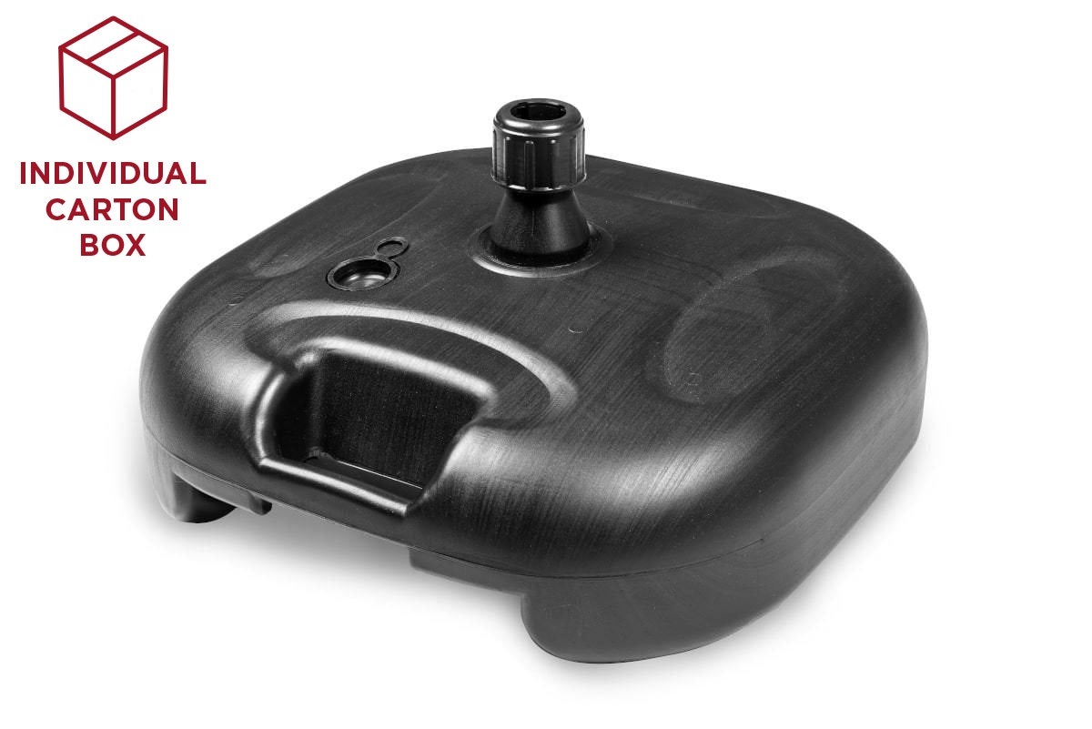 Vienas iš mūsų perkamiausių pagrindų. Talpykla pagaminta iš storo, lanksčio plastiko su tvirtinimo anga vėliavos stiebui. Tuščio pagrindo svoris yra 0,4 kg, o pripildyto vandens – iki 20 kg. Komplektą sudaro: vandens bakas, individuali dėžutė.